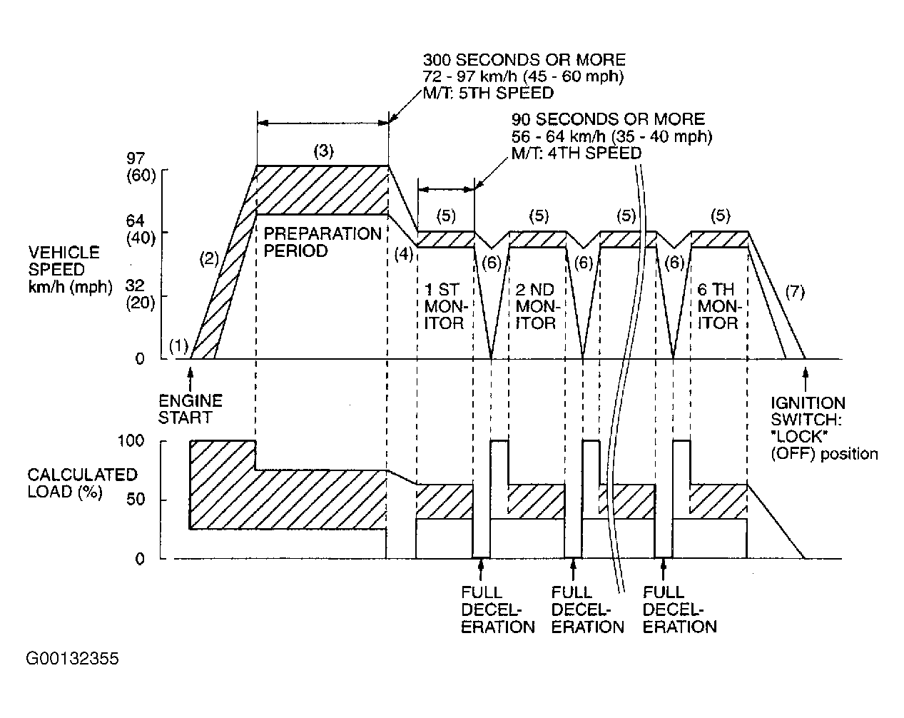 - Travel 300 seconds or more while keeping speed at 45-60 MPH. Use 5th gear on M/T.