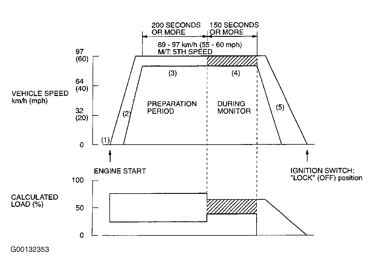 - Travel for 200 seconds or more while keeping speed at 55-60 MPH. Use 5th gear on M/T.