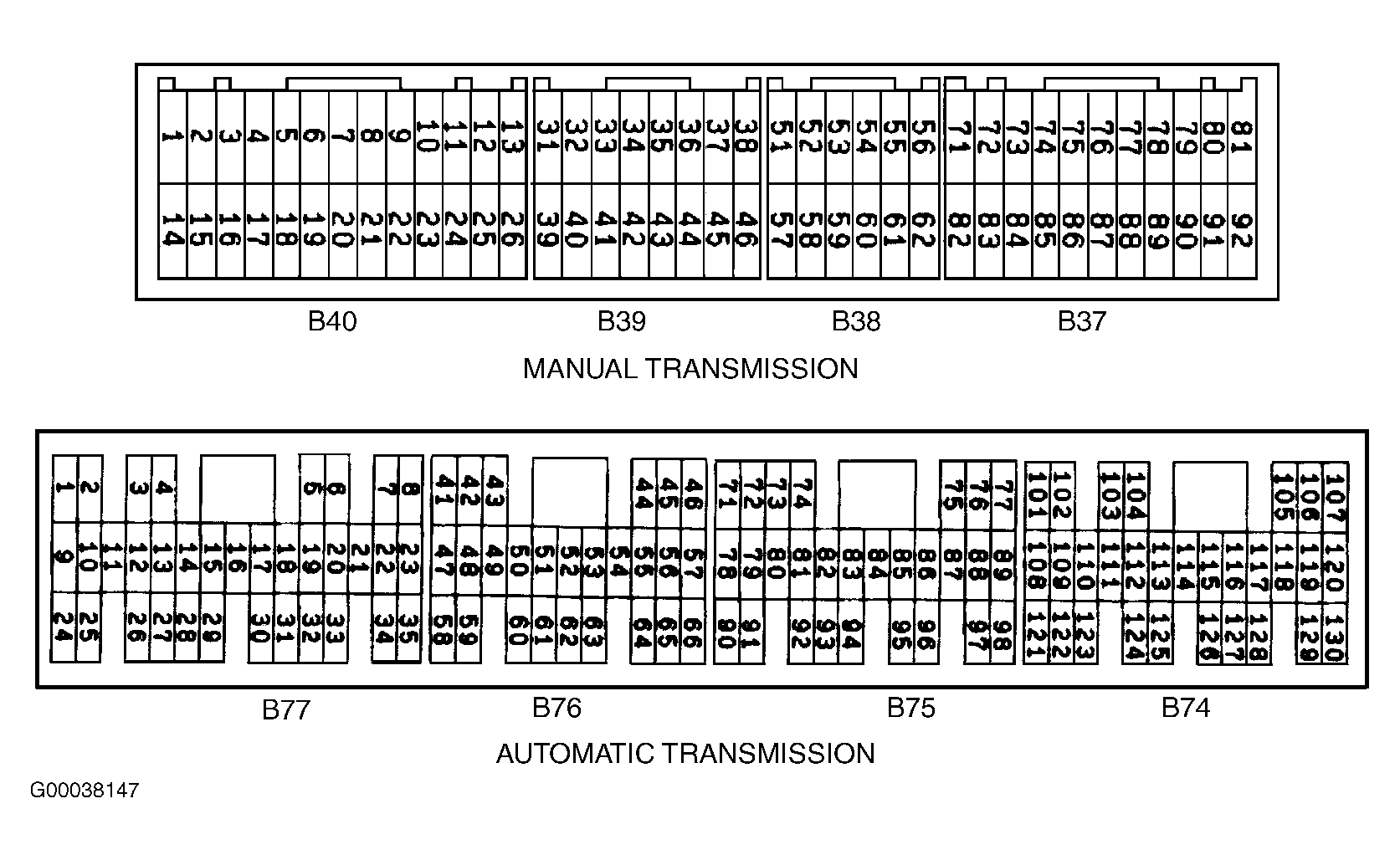 - Check for poor or loose connection at ECM connectors B37 and B40 (M/T), or PCM connector B76 (A/T). Repair ECM or PCM connectors as necessary. If ECM and PCM connectors are okay and problem still exists, replace ECM (M/T) or PCM (A/T).