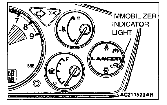 If an attempt is made to start the engine with an unregistered ignition key, cranking occurs, but fuel supply is cut off to disable the engine. In approx. 10 seconds, the immobilizer indicator will blink for approx. 30 seconds.