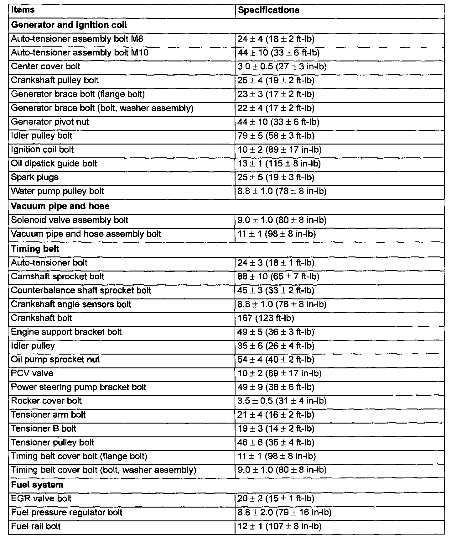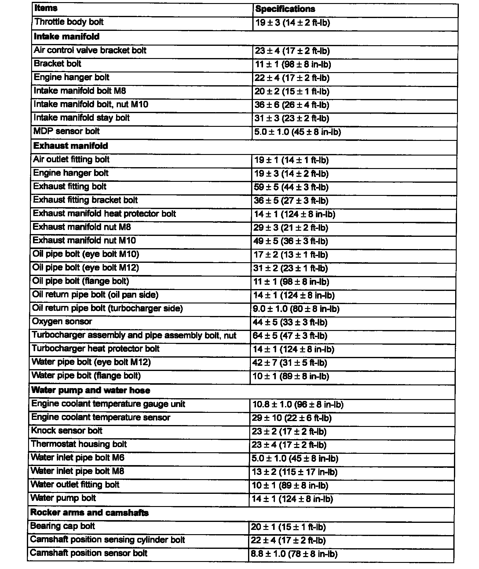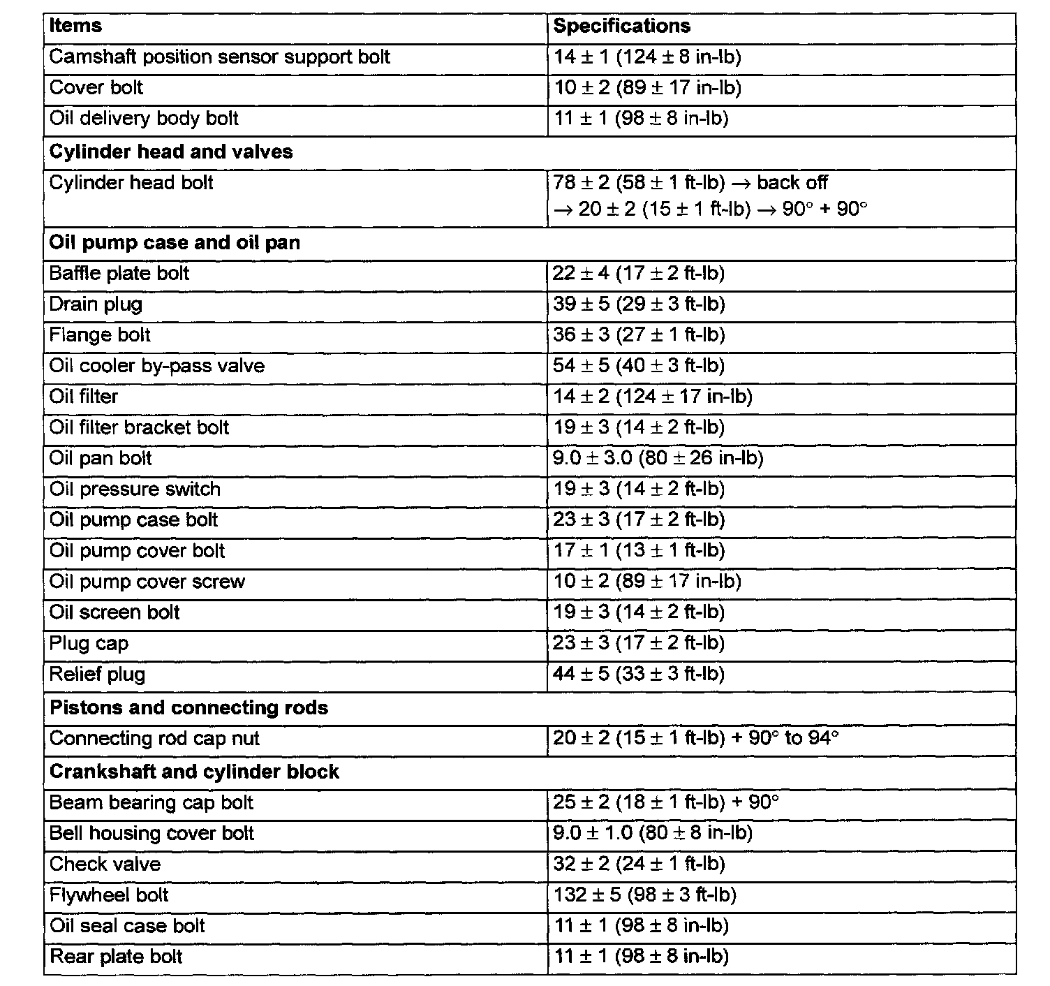 Torque Specifications
