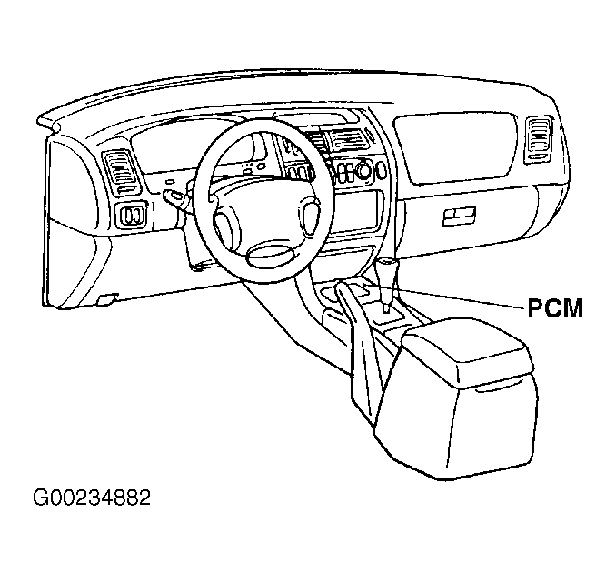 Vehicles equipped with manual transmission use an Engine Control Module (ECM). Vehicles equipped with automatic transmission use either ECM with separate Transmission Control Module (TCM), or a Powertrain Control Module (PCM), depending on model. PCM combines functions of ECM and TCM. PCM receives and processes signals from input devices. Operating conditions such as cold starting, altitude changes, acceleration and deceleration affect input device signals. Based on signals received, PCM sends signals to various components which control fuel injection, ignition timing, idle speed and emission control systems. For PCM location, see Fig 1-Fig 14 .