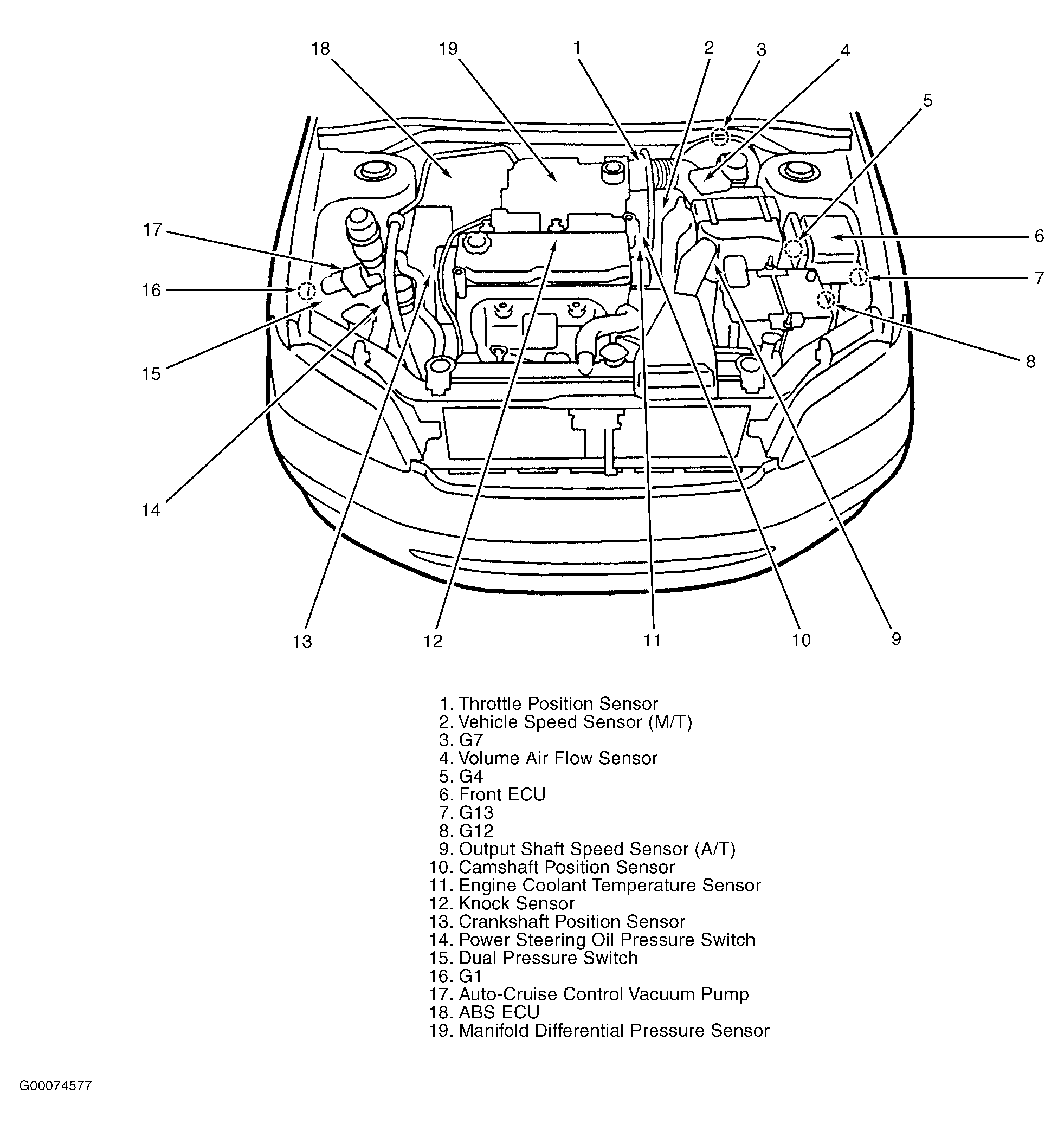 | ABS ECU (2.0L) | On right rear of engine compartment. See Figure . |
