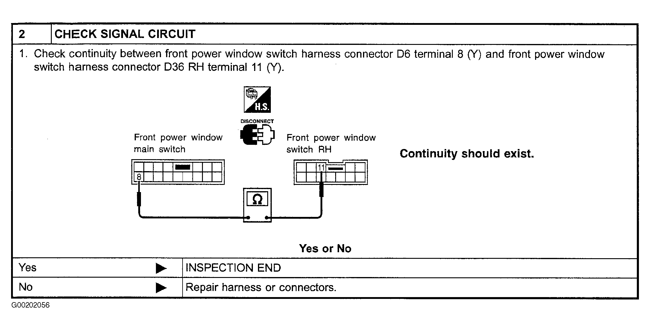 Fig 2: Performing Main Switch Operation Check, Passenger Side Window, Step 2 (2002 Model)