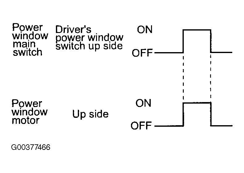 When the driver's power window switch on the power window main switch is pulled up, the system energizes its respective power window motor, and then driver's window glass rises. See Fig 1.