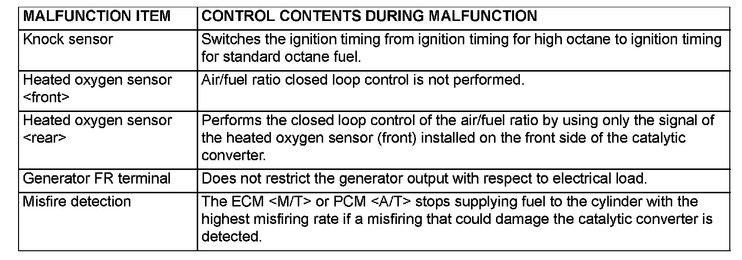 When the main sensor malfunctions are detected by the diagnostic test mode, the vehicle is controlled by means of the given defaults.