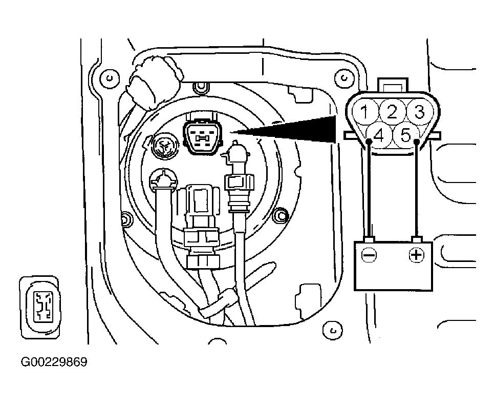 5. When the fuel pump drive connector is attached directly to the battery, check if the fuel pump can be heard operating. If no operating sound is heard, replace the fuel tank pump.