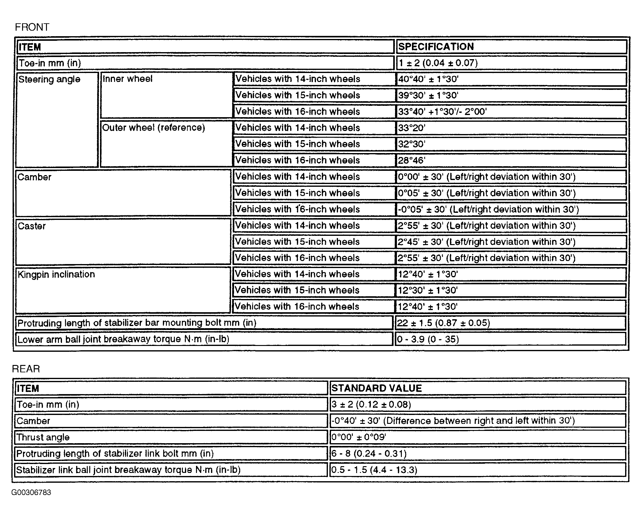 For wheel alignment specifications, see