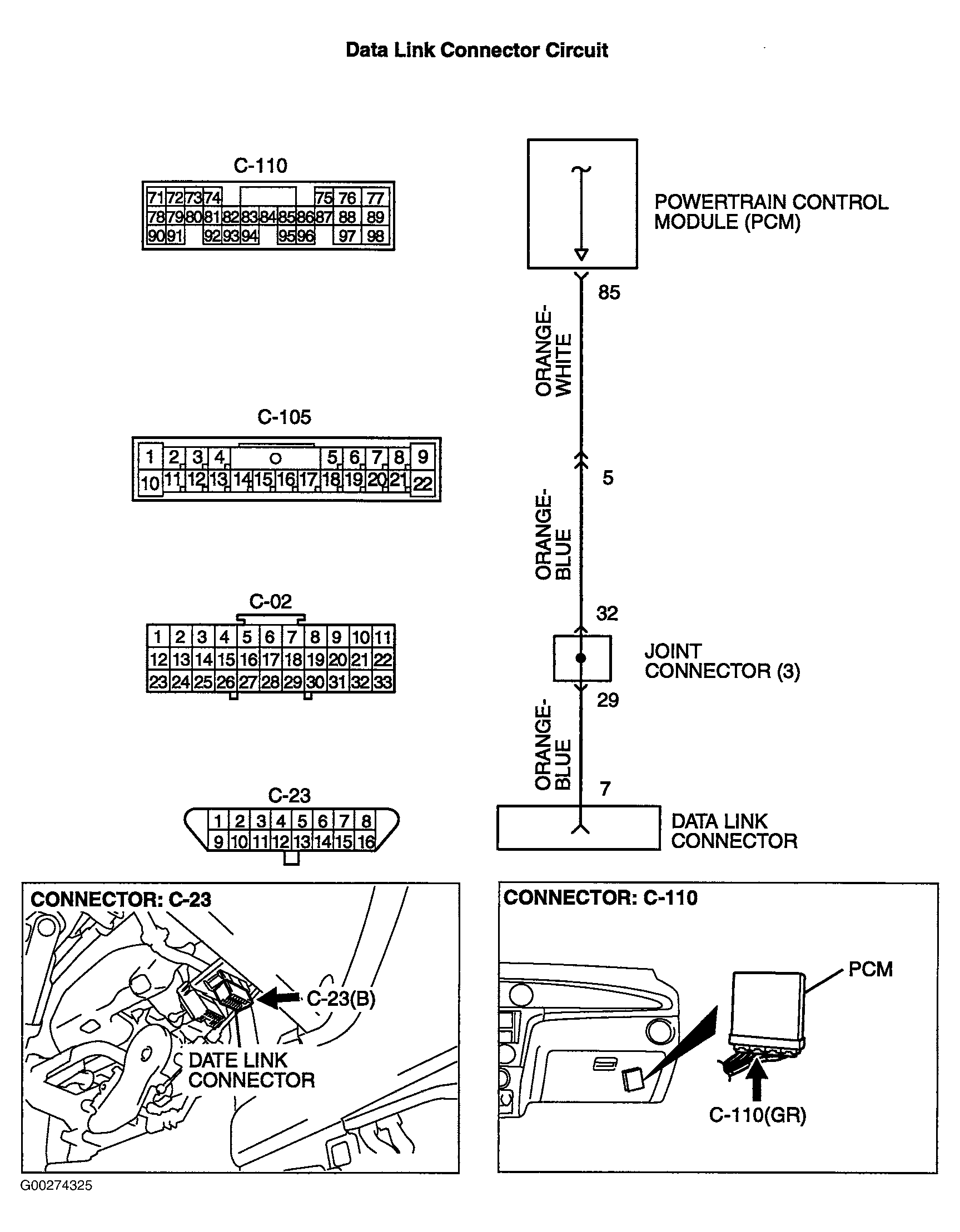 A diagnostic output is made from the PCM (terminal No. 85) to the diagnostic output terminal (terminal No. 7) of the DLC. See Figure .
