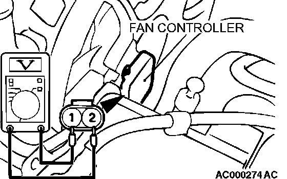 5. If the voltage does not repeatedly change as indicated, replace the radiator fan motor and the fan controller assembly.