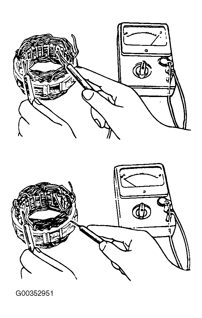 - Check the continuity between the coil and the core. If there is continuity replace the stator. See Fig 1