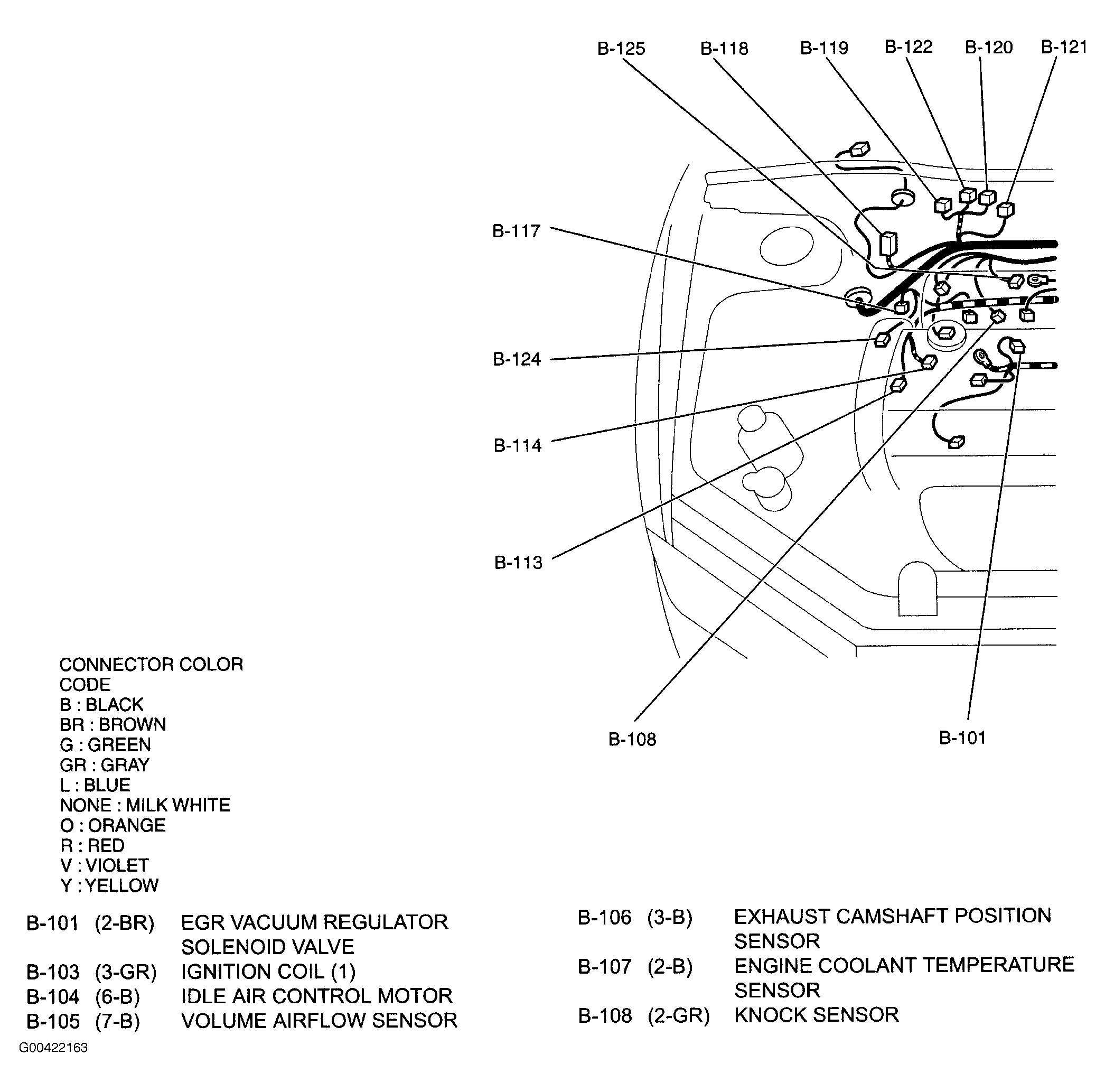 | Injector Resistor (B-119) | At right rear of engine compartment. See Figure . |