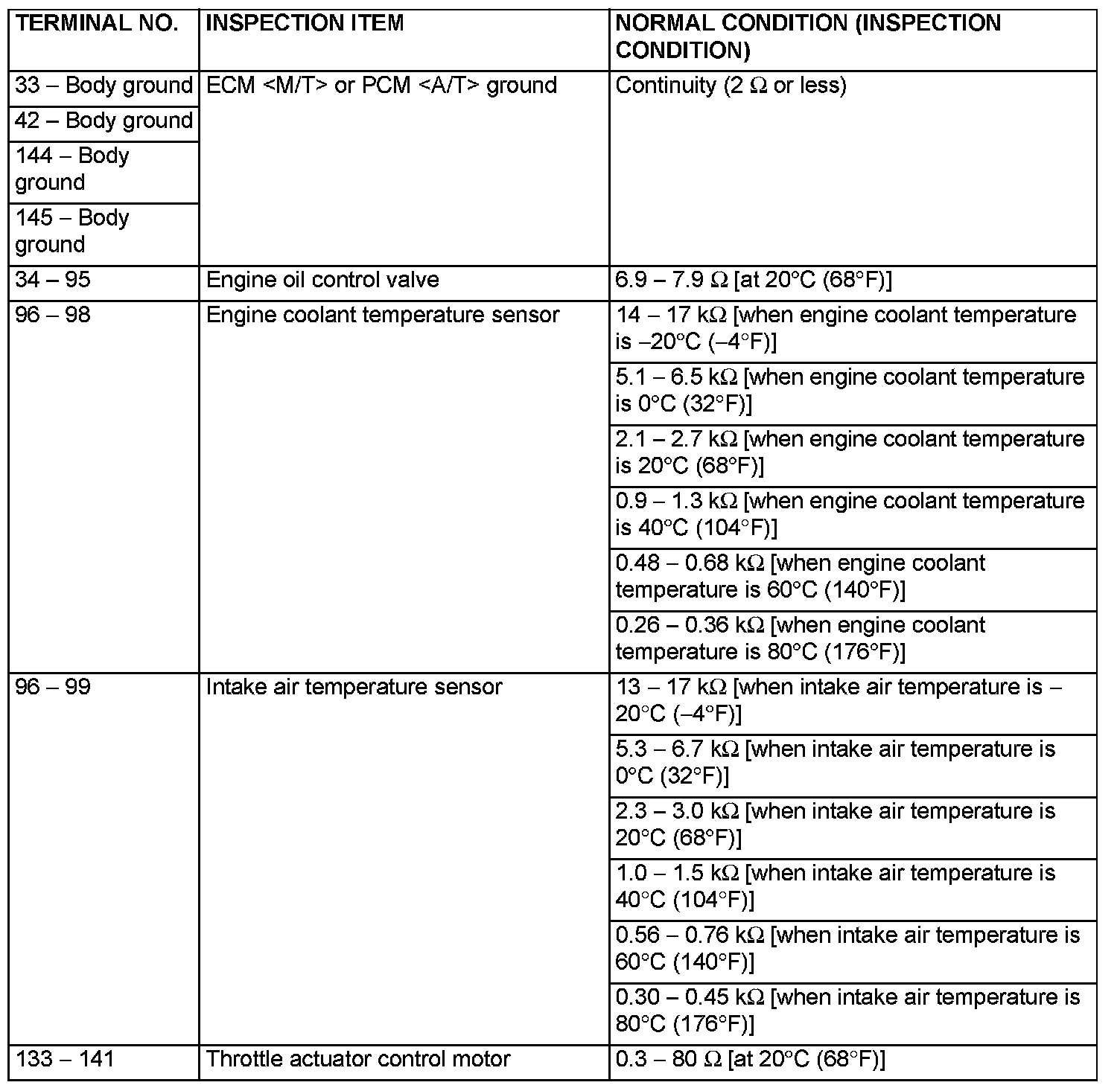 ECM <M/T> Or PCM <A/T> Harness Side Connector Terminal Arrangement Part 2: