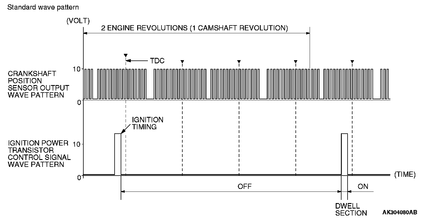 Point: The power transistor control signal (ignition timing) is advanced when the engine speed is increased.