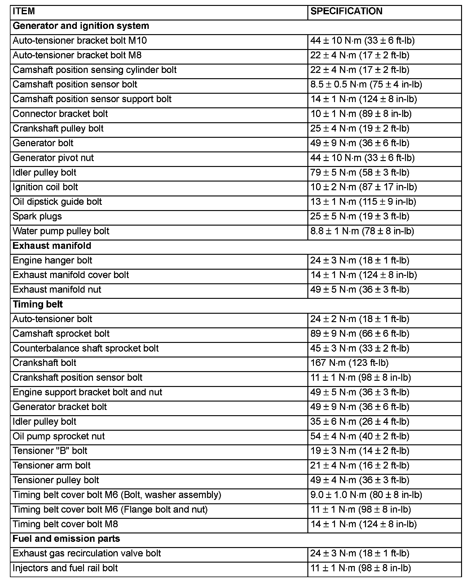 Torque Specifications