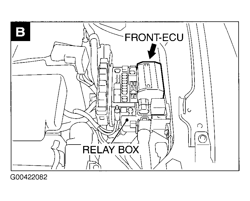 Front ECU In engine compartment relay box. See Figure.