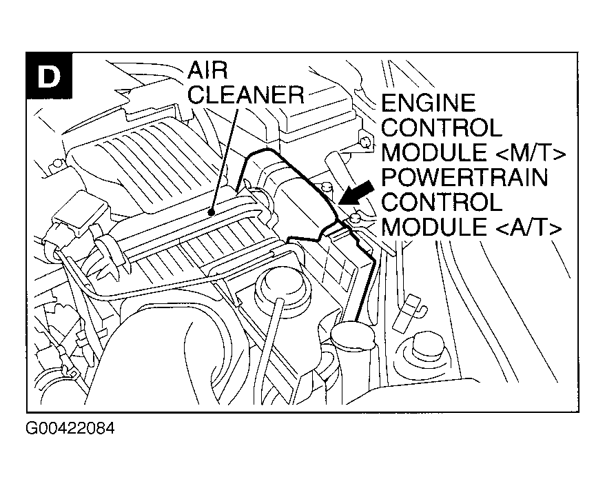 Engine Control Module (M/T) Left side of engine compartment, forward of relay box. See Figure.