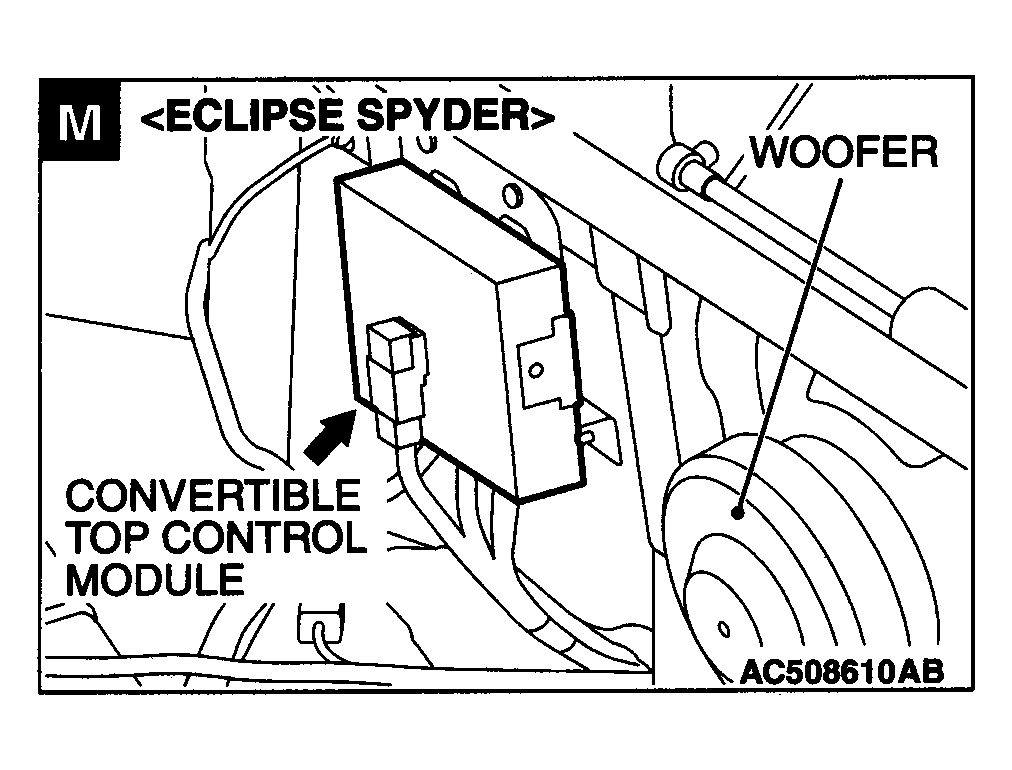 Convertible Top Control Module Left front of luggage compartment. See Figure.