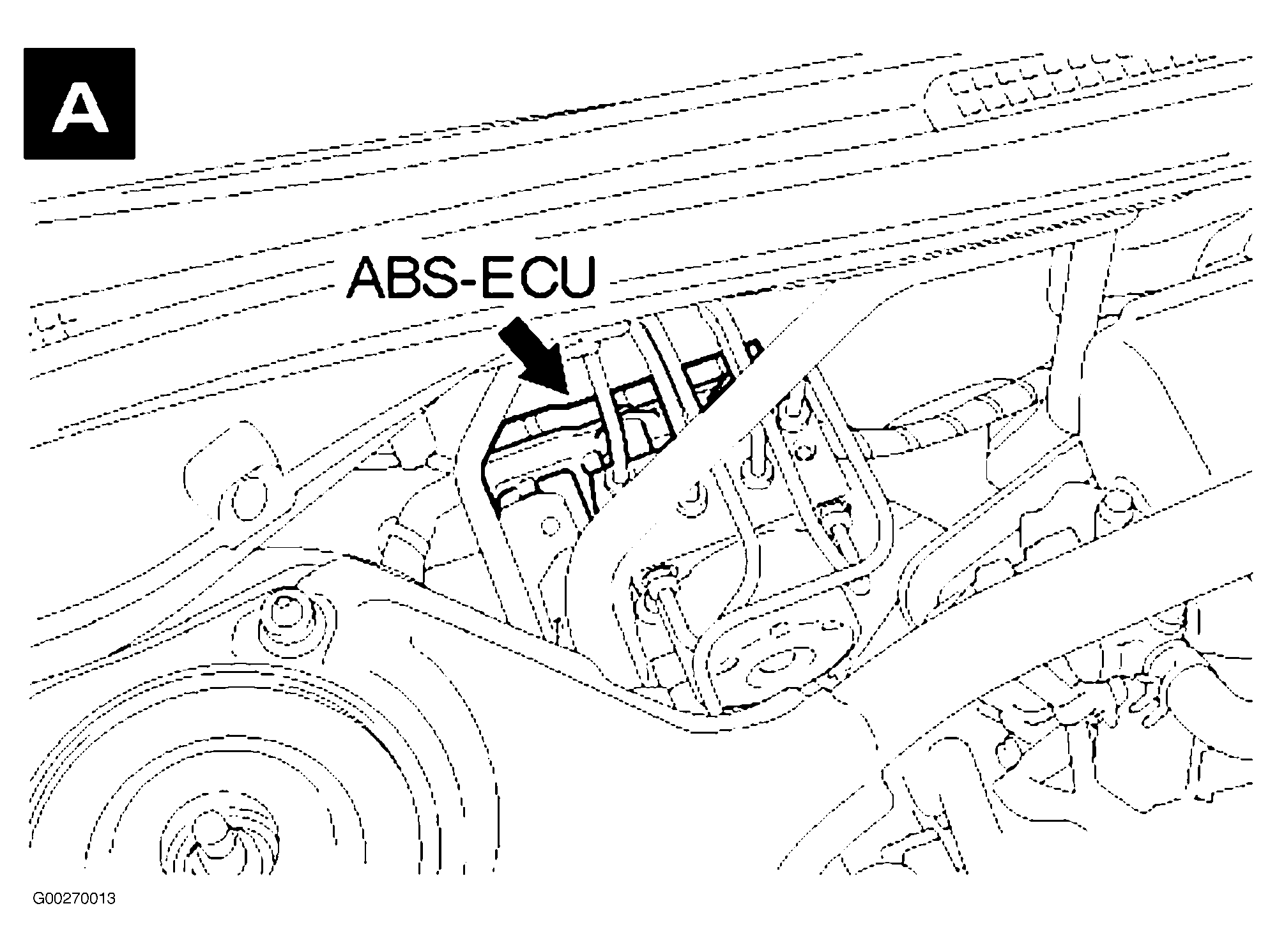 | ABS ECU | On right rear of engine compartment. See Figure. |