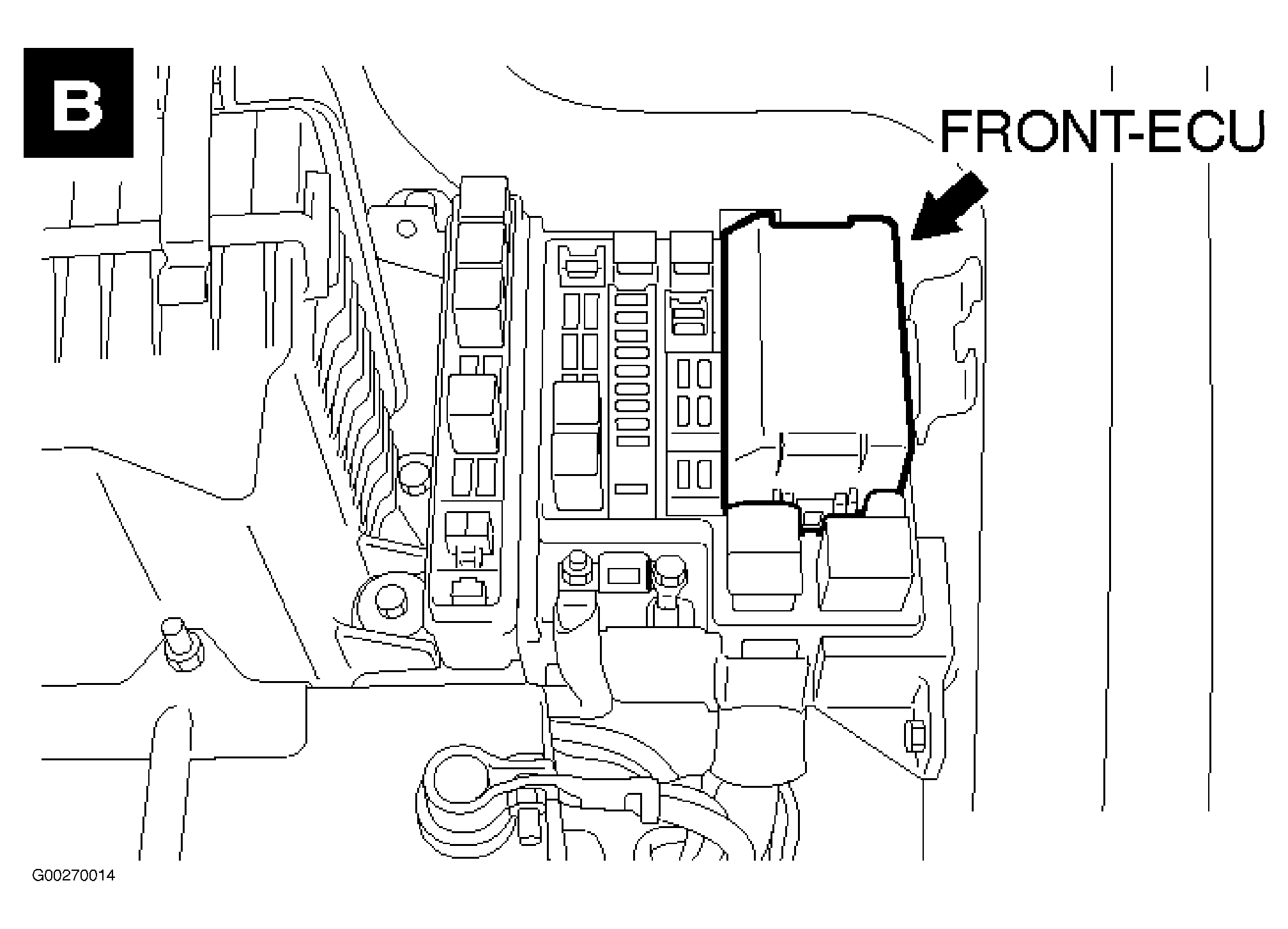 | Front-ECU | In engine compartment relay box. See Figure. |