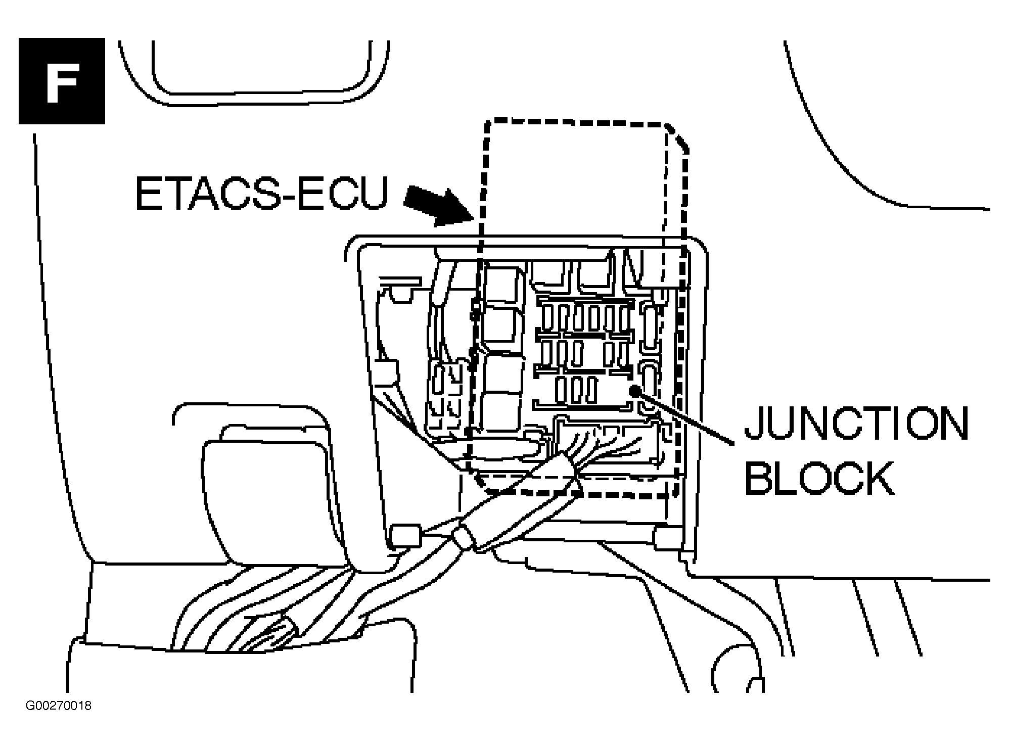| ETACS ECU | On rear of junction block, behind left end of dash. See Figure. |