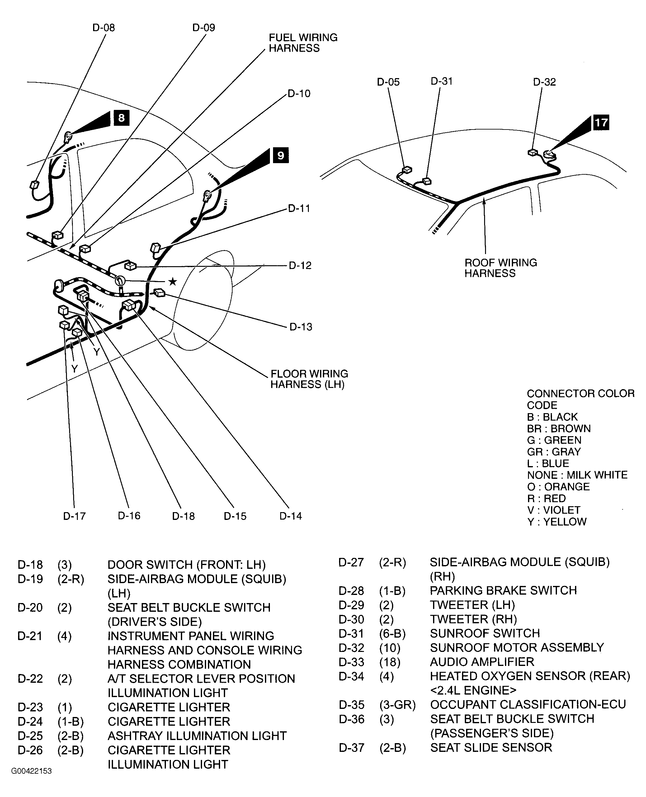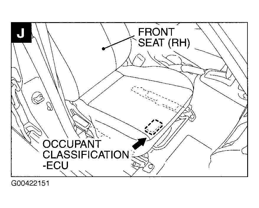 | Occupant Classification-ECU | Under front of front passenger's seat. See Figure. |