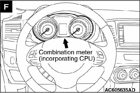| Combination Meter ECU | Behind instrument cluster. See Figure. |