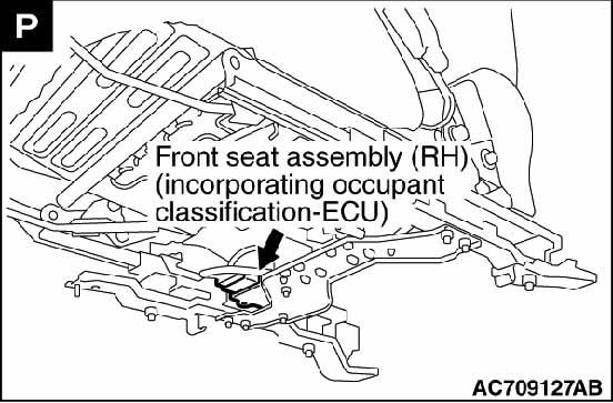 | Occupant Classification-ECU | Under front passenger's seat. See Figure. |