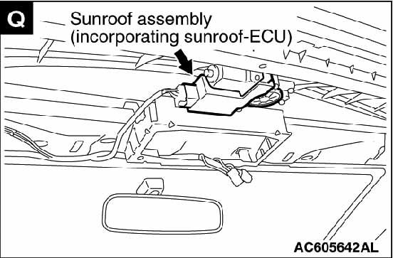 | Sunroof-ECU | Front center of headliner. See Figure. |
