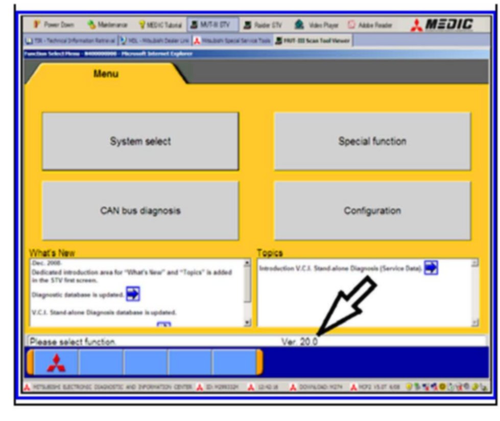 Check to see that your MUT-III version is at 22.0 or higher. If it is not at version 22.0 or higher, locate your MUT-III Scan Tool Viewer version 22.0 CD, and follow the instructions printed on the disc to update the laptop.