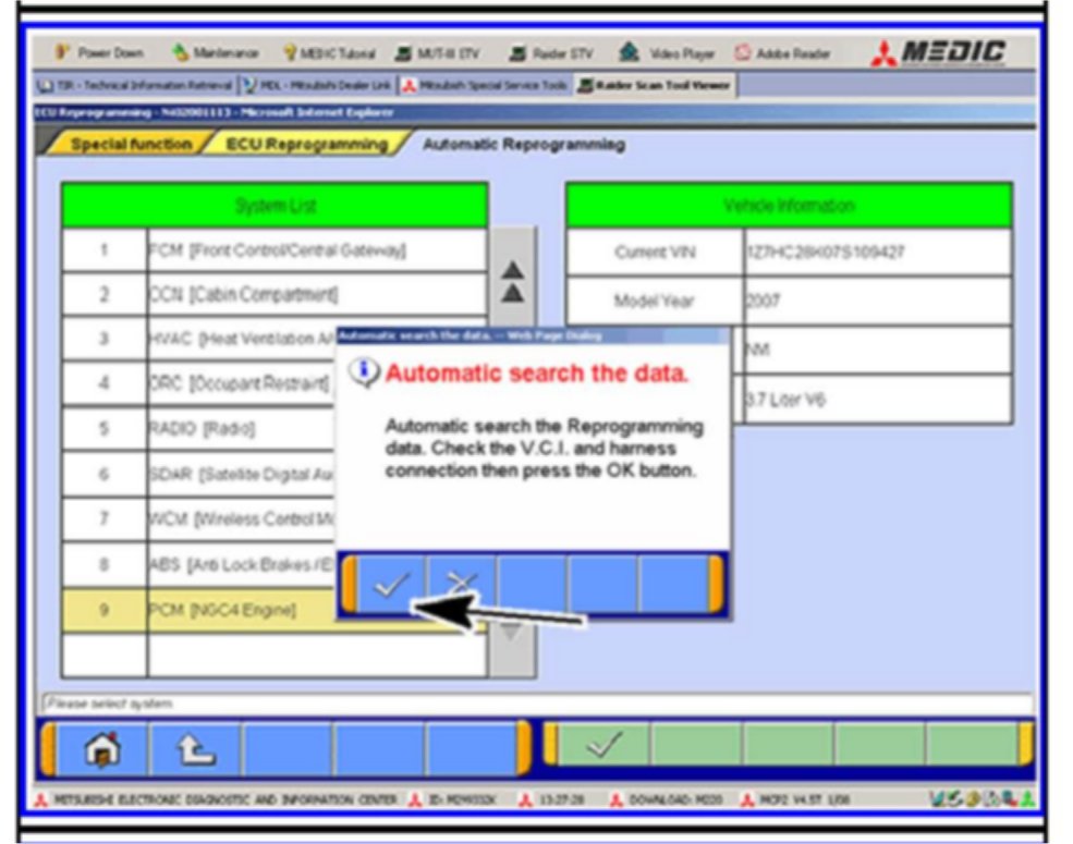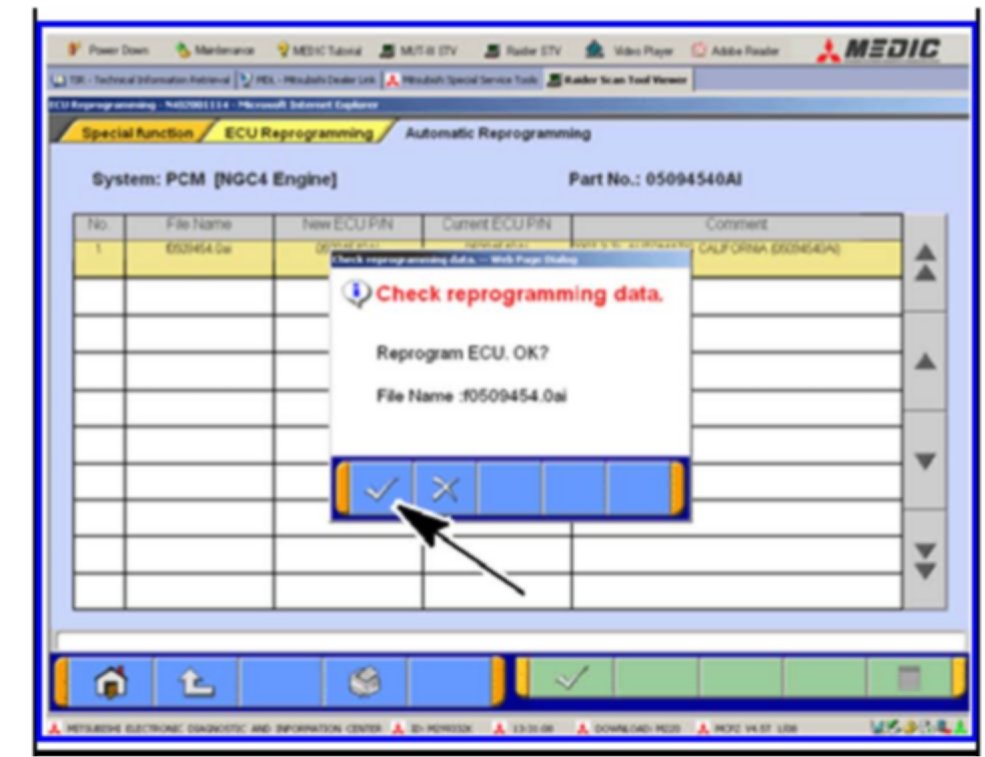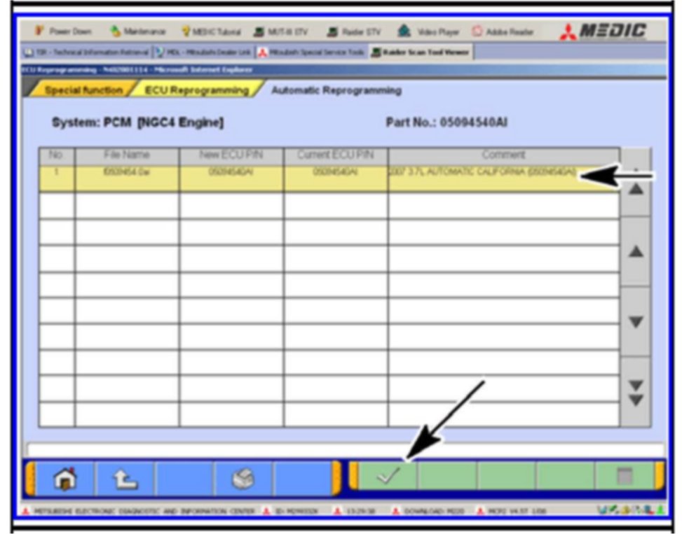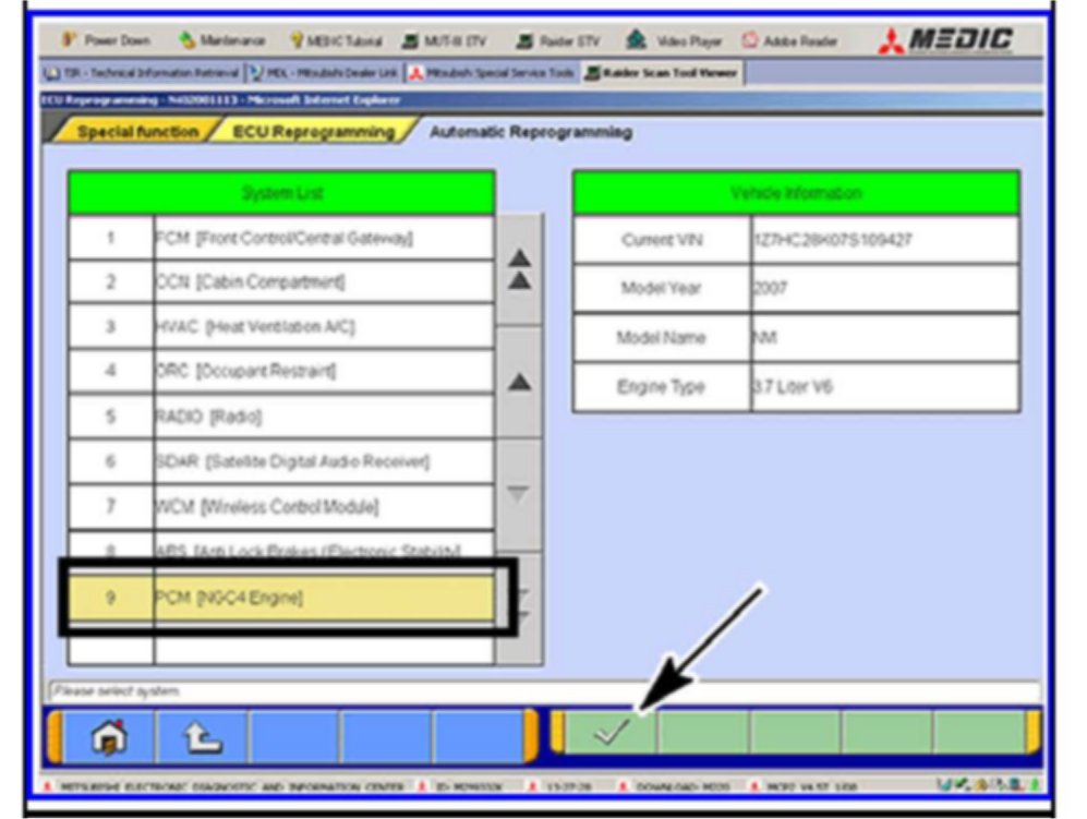 Home >> Mitsubishi >> 2008 >> Raider 2WD V6-3.7L >> Repair and Diagnosis >> Relays and Modules >> Relays and Modules - Powertrain Management >> Relays and Modules - Computers and Control Systems >> Engine Control Module >> Technical Service Bulletins >> All Technical Service Bulletins >> Engine, A/T Controls - A/T In Limp-In Mode On Start Up >> Procedure <
