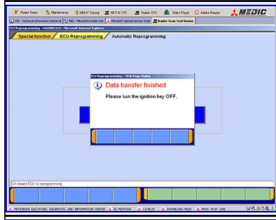 10. When programming is complete, this screen will display. Turn the ignition key off.