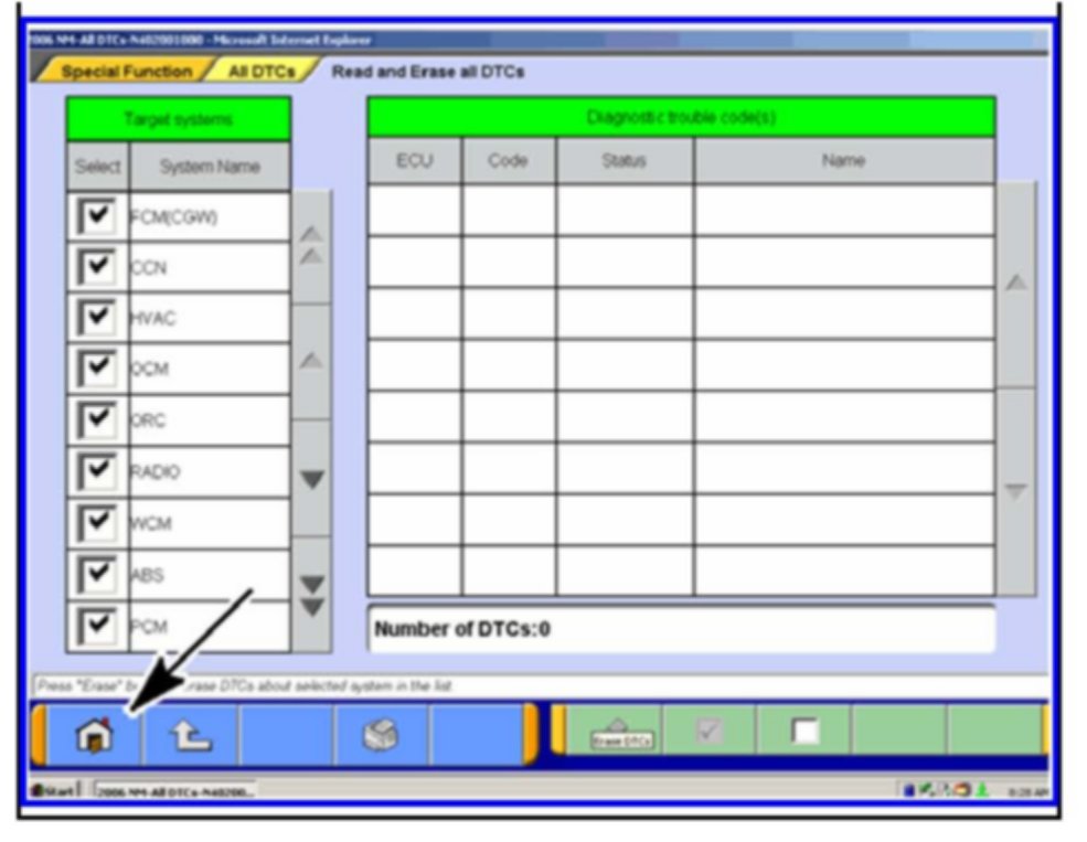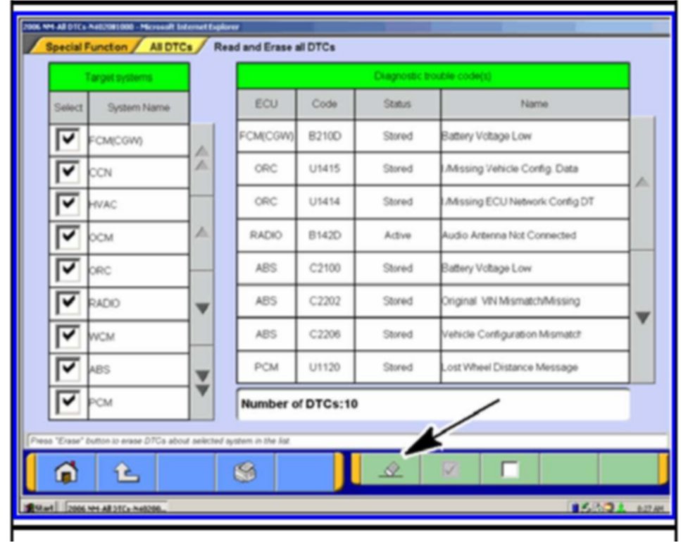 2. If DTCs are listed, click on the Erase button at the bottom of the screen.