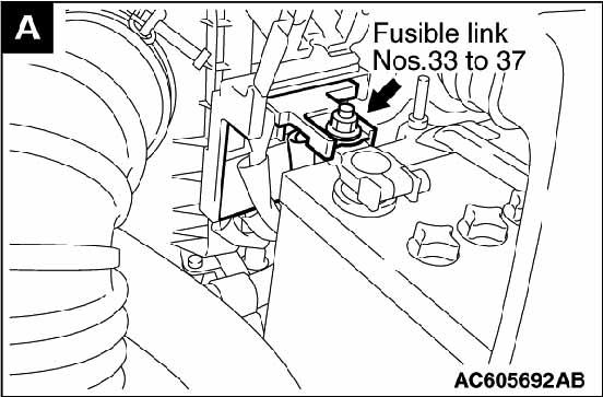 Fusible Link No. 33, 34, 35, 36 & 37 Next to battery. See Figure.