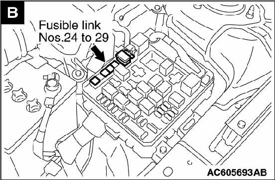 Fusible Link No. 24, 25, 26, 27, 28 & 29 On underhood fuse/relay block. See Figure.