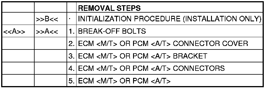 - Do not replace the ECM[ M/T] or PCM[ A/T] and the ETACS-ECU simultaneously. Always replace either one of the ECUs first, and register the encrypted code Encrypted Code Registration Criteria Table ). Then, replace the other ECU.