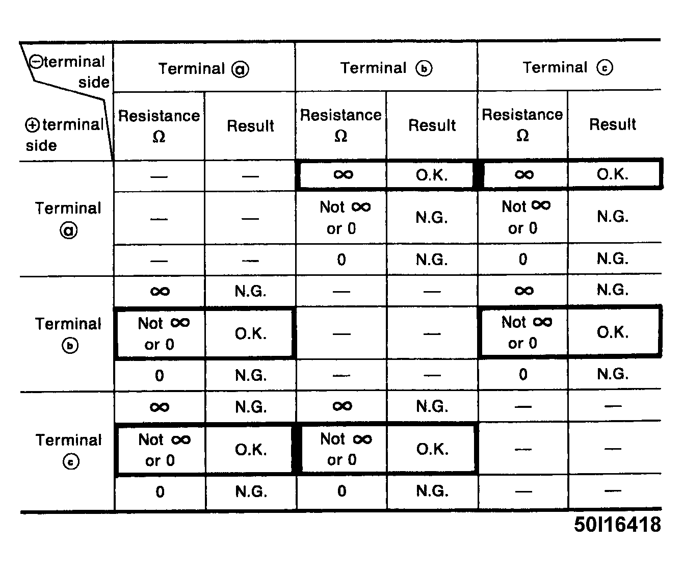 Disconnect power transistor harness connector. Check continuity between terminals with a digital tester. See Fig 1