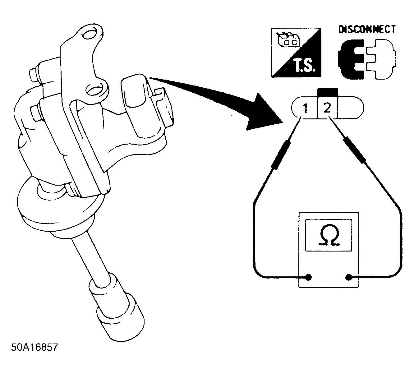 Disconnect 3-wire connector from ignition coil. Check primary resistance between terminals "1" and "2" of ignition coil. See Fig 1. Resistance should be 0.7 ohm.