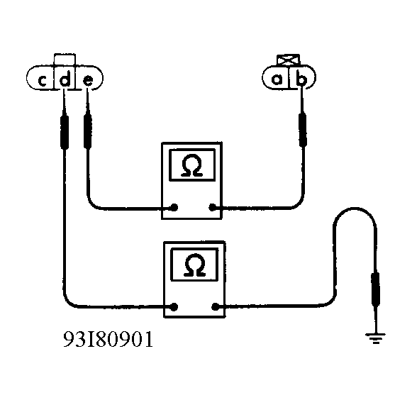 . At power transistor connector, check continuity between the following terminals, noting ohmmeter test lead polarity: