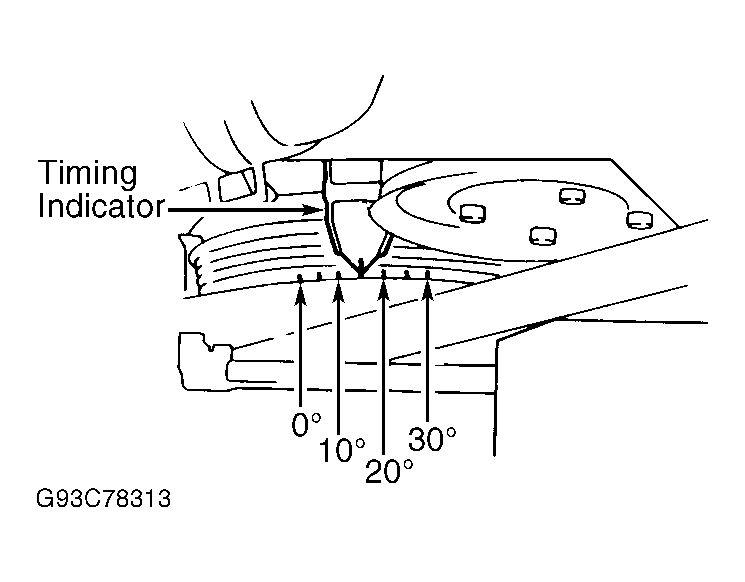 - Check ignition timing. See V6 IGNITION TIMING table. See Figure