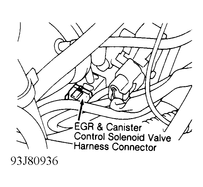 - Turn engine off. Leave ECM disconnected. Disconnect EGR and canister control solenoid valve wiring harness connector. See Fig 1