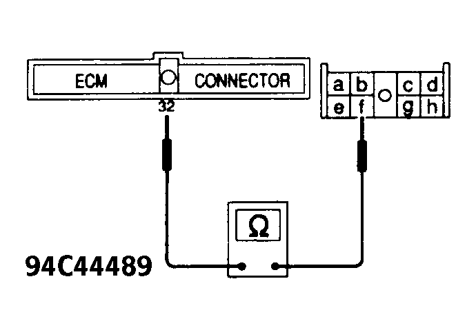 Turn ignition off. Disconnect ECM and combination meter wiring harness connector. Check harness continuity between ECM terminal No. 32 and combination meter terminals "f" (Yellow/Green wire). See Fig 1 . If continuity is present, check ECM pin terminals and connector and repair as necessary. If continuity is not present, repair wiring harness or connectors as necessary and perform FINAL CHECK .