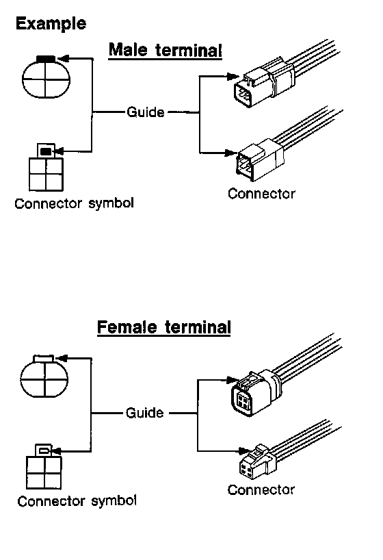 Most of connector symbols in wiring diagrams are shown from the terminal side.