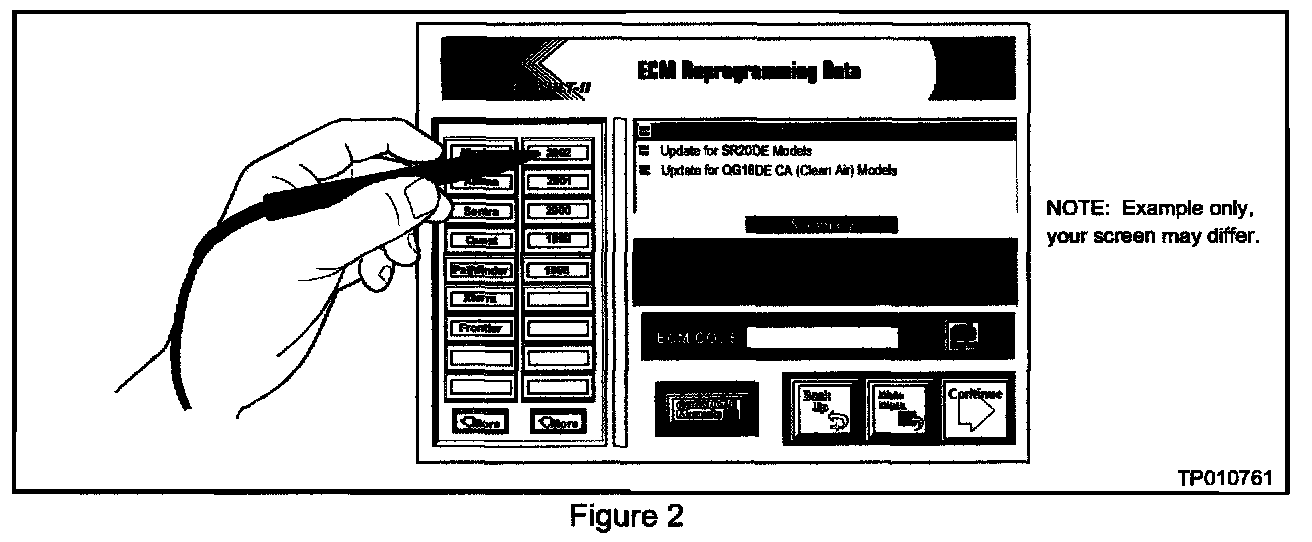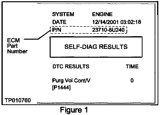 2. Determine the vehicle's Current ECM Part Number. The ECM P/N is found on top of the CONSULT-II self-diagnosis printout (see Figure 1), or by CONSULT ECM P/N Selection.