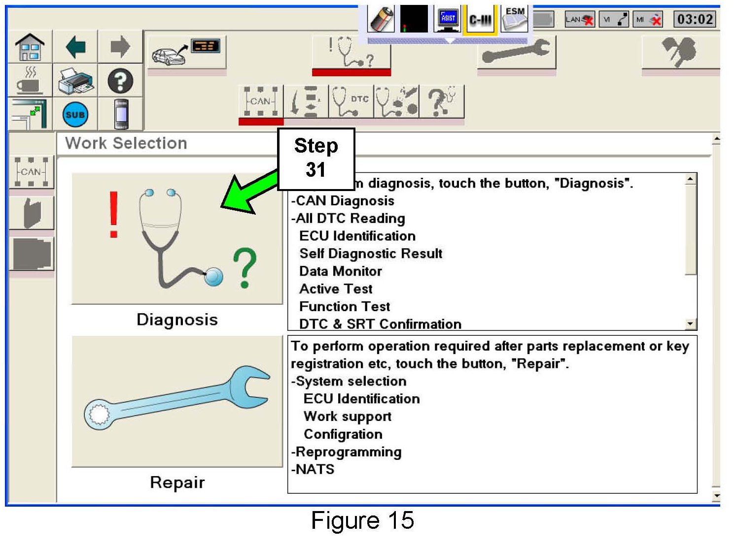 When the CAN diagnosis reaches 51%, the process icons in the Process Guide Area at the top of the screen will light (become enabled).