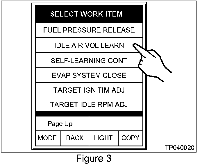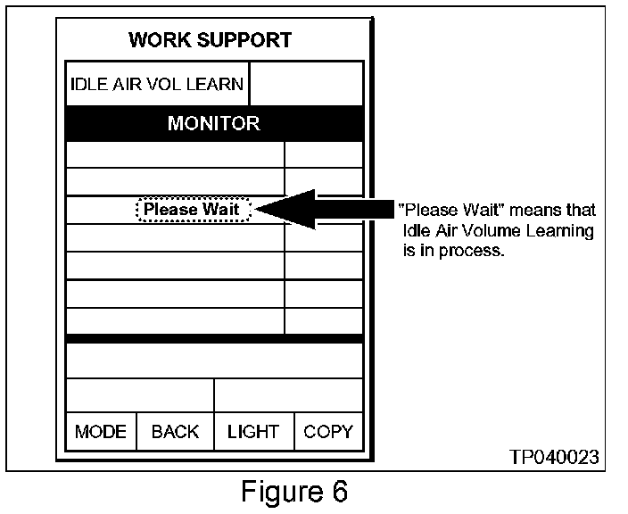 e. Press [START] on the "WORK SUPPORT" screen to begin the Idle Air Volume Learning (IAVL) procedure. See Figure 5.