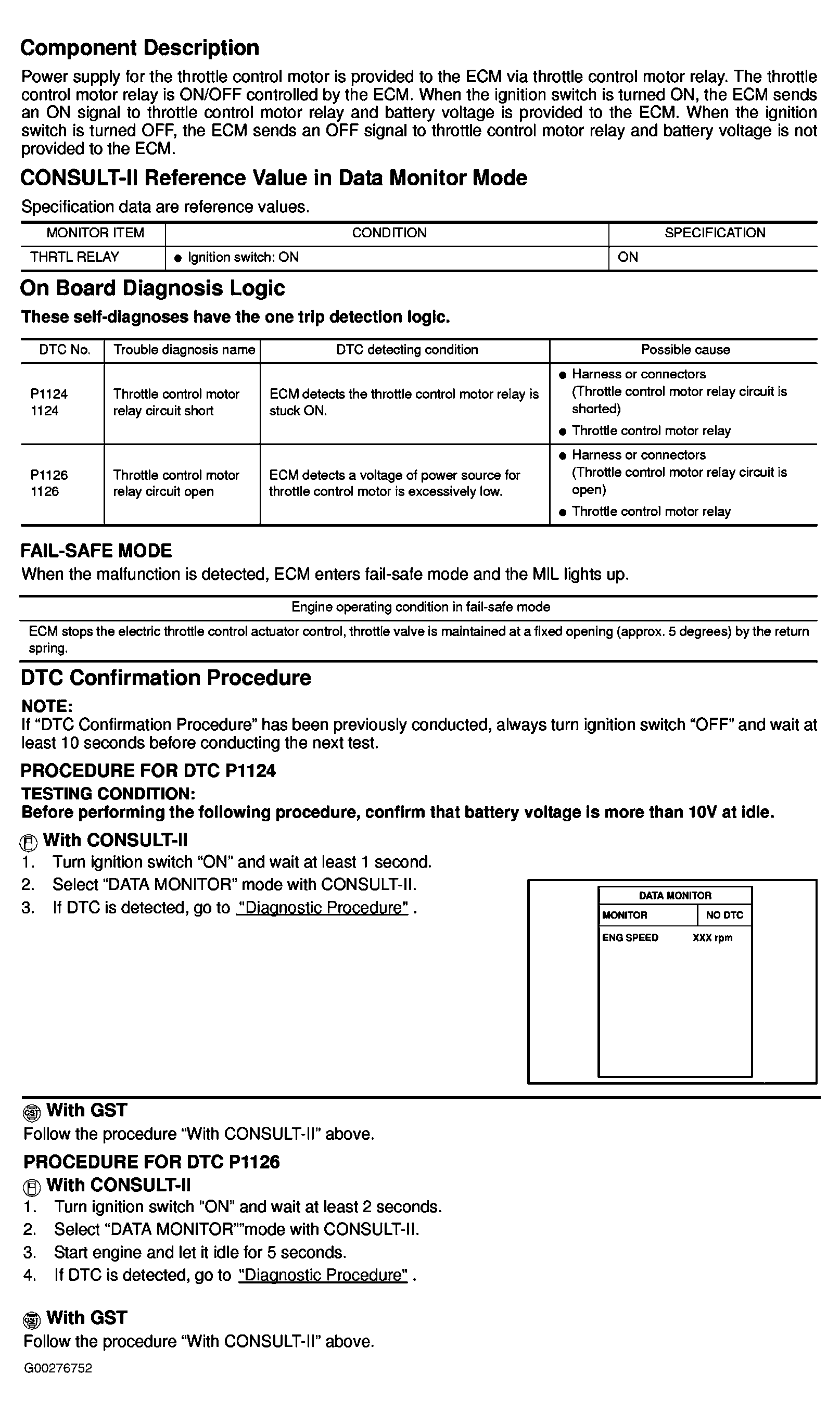 Component Description, CONSULT-II Reference Value In Data Monitor Mode, On Board Diagnosis Logic, Fail-Safe Mode & DTC Confirmation Procedure