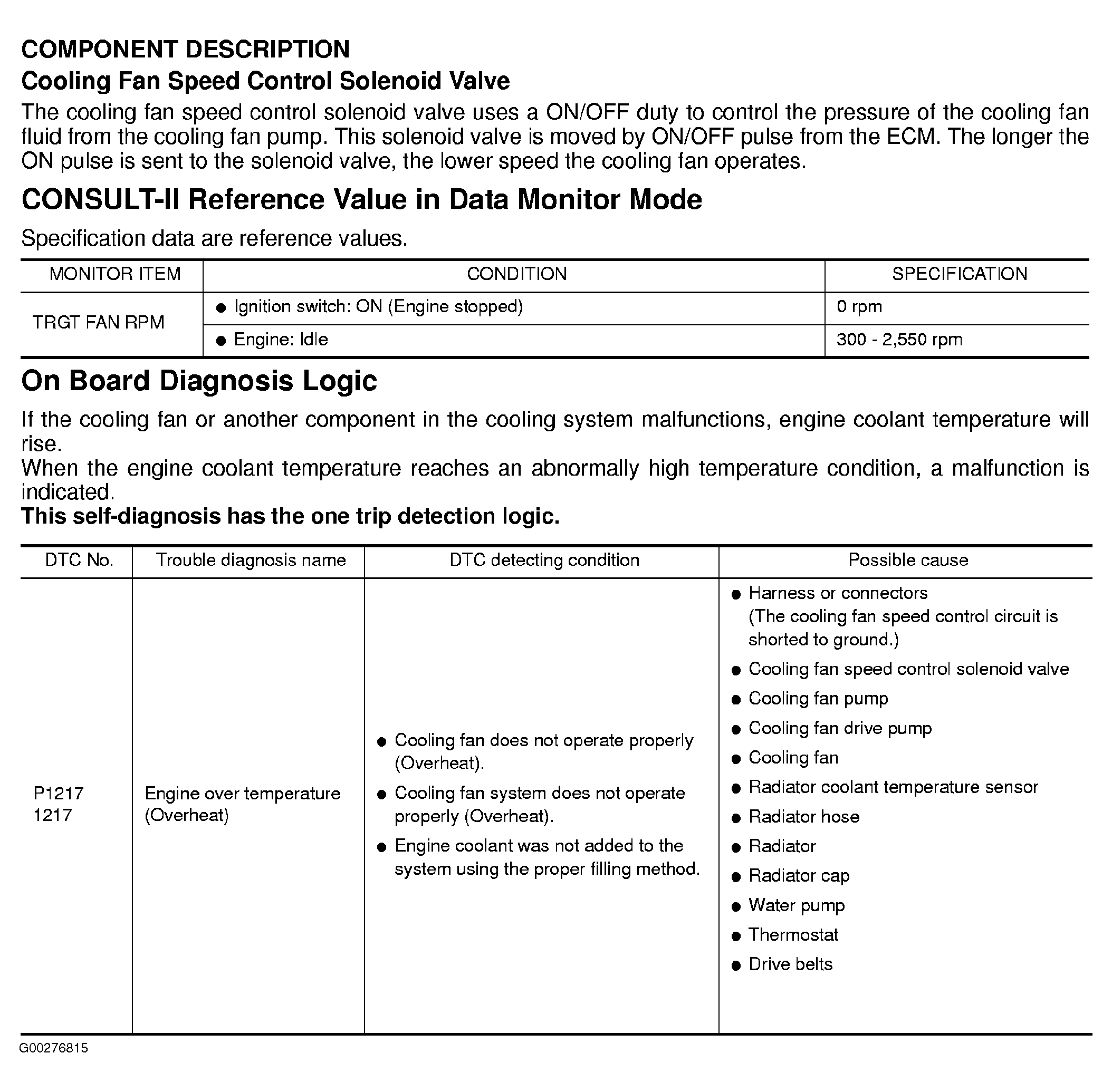 For component description, CONSULT-II reference value in data monitor mode and on board diagnosis logic, see Fig 1 .