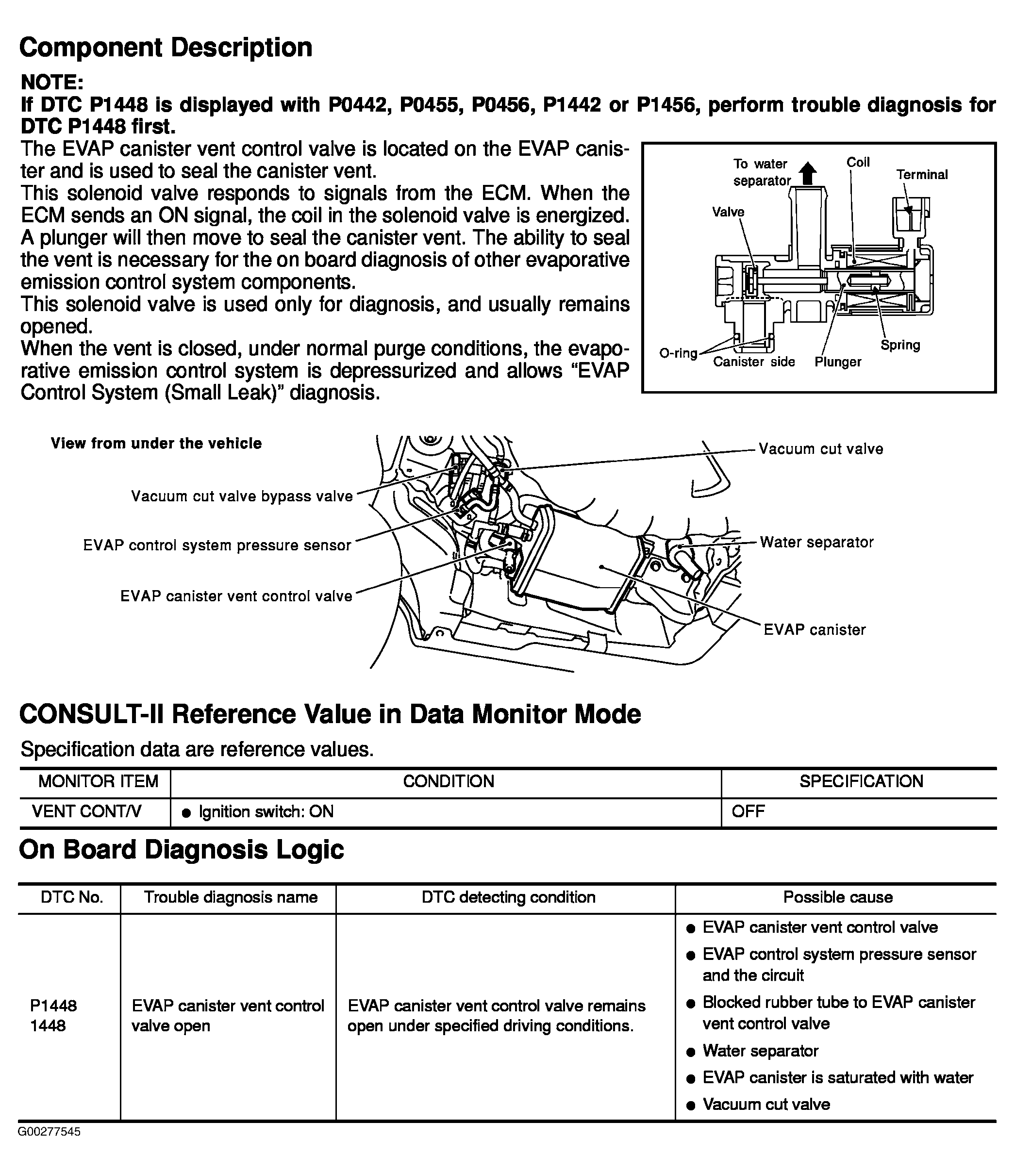 For component description, CONSULT-II reference value in data monitor mode and on board diagnosis logic, see Fig 1 .
