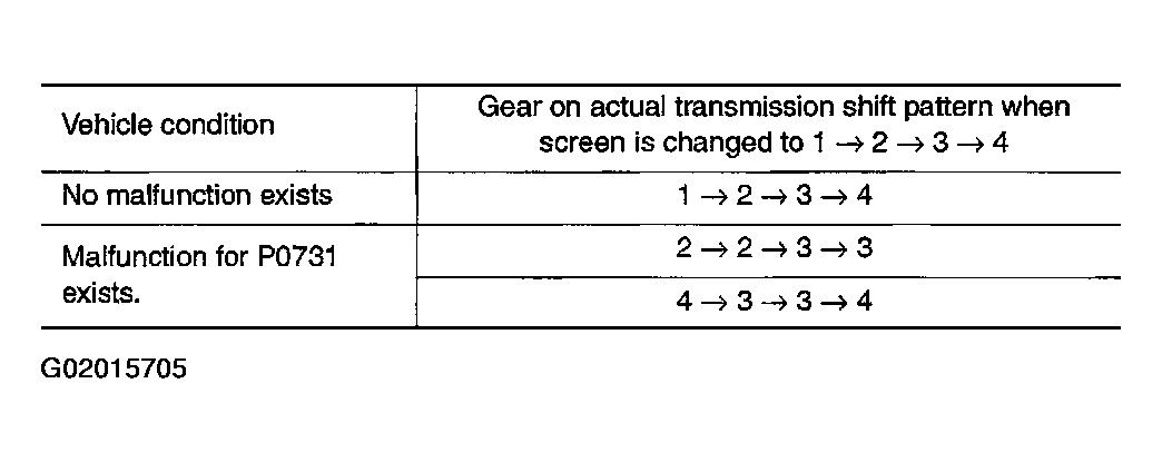 - Check that GEAR shows 1 when depressing accelerator pedal to WOT .